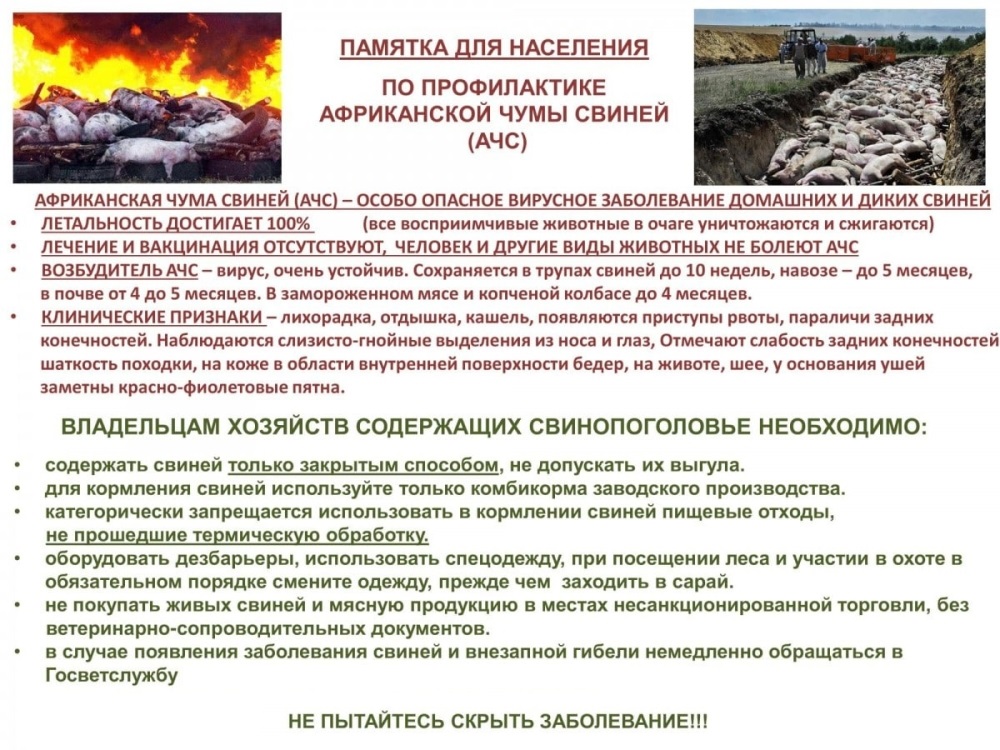 Памятка по профилактике африканской чумы свиней